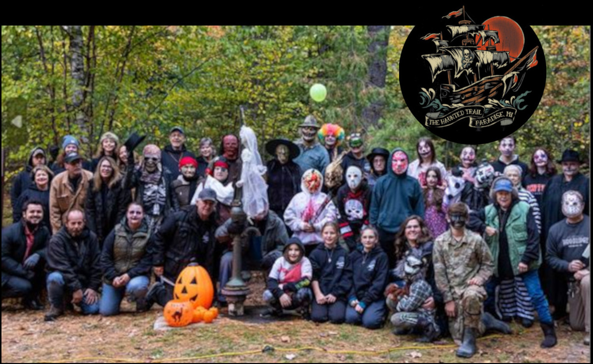 The Paradise MI Chamber of Commerce presents: The Haunts of Lake Superior at the 2025 Haunted Trail! Wander through the spooky forest of Sawmill Creek Park and watch out for the ghost of 3 fingered Riley, beware of the Schoolmarm of Shelldrake, and dare to navigate the maze of the Haunted Ship and much, much, more! The Haunted Trail will be held on Friday & Saturday evening, October 10 & 11, 2-25 at Sawmill Creek Park, in the Upper Peninsula of Paradise, Michigan from 7-10 p.m. each night. Concessions & souvenir clothing will also be available on site. Cash or card will be accepted for the $10 admission price.